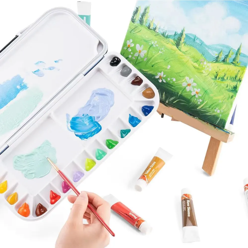 18-grid paint storage box, sealed, foldable and removable, with 3 extra area palettes, specially designed for painting.