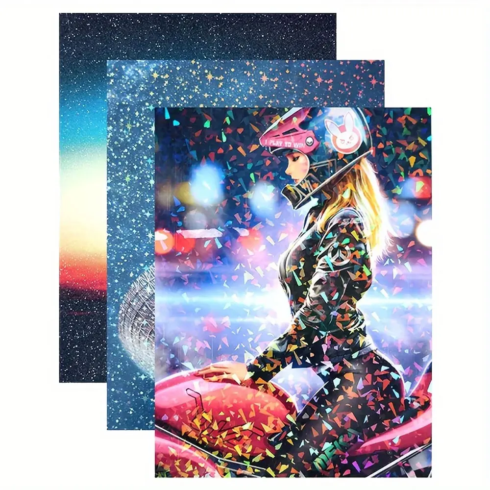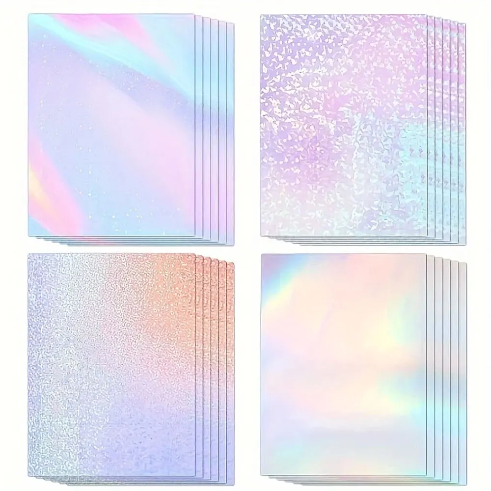 24 sheets of holographic stickers, clear vinyl self-adhesive for photos, pictures, cards, crafts (A4 size/4 styles)