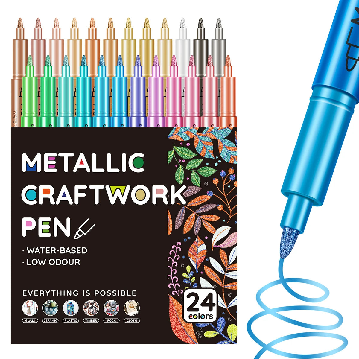 36 Colors Metallic Paint Markers Pens Set for Rock Painting Stone Ceramic Wood Fabric Pebbles Scrapbook Journals Photo Albums