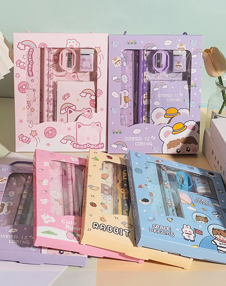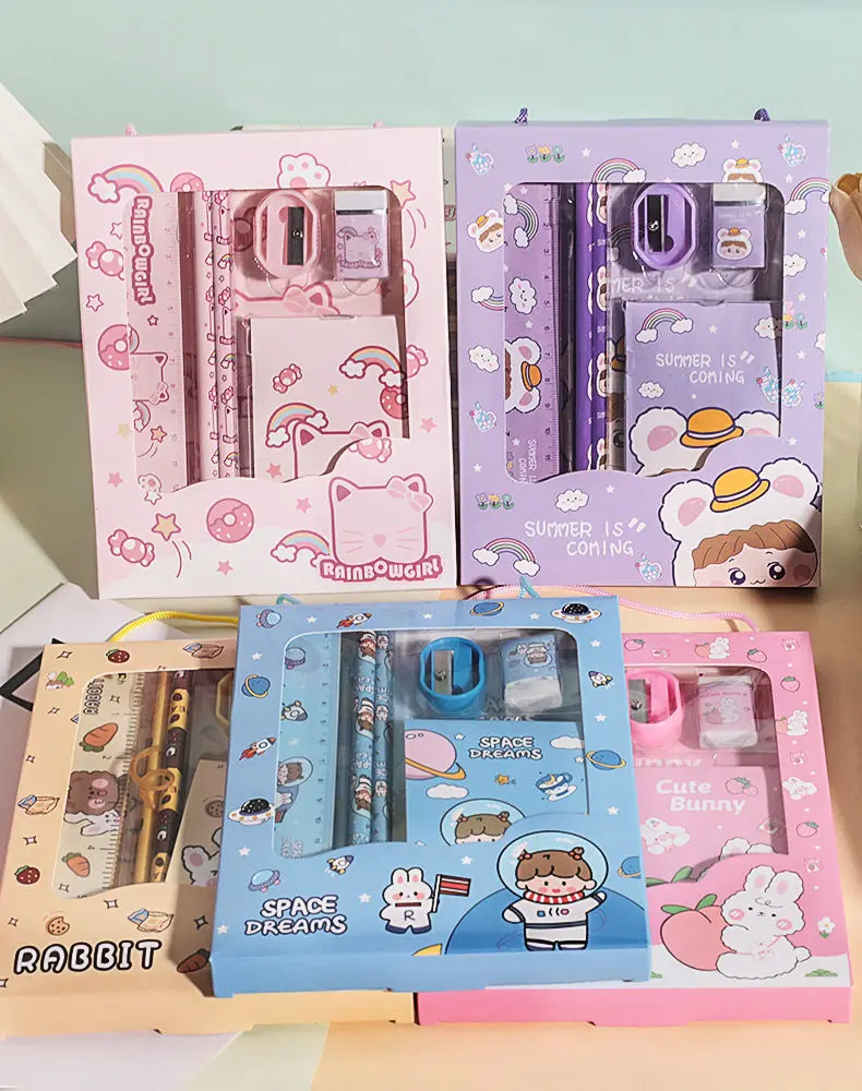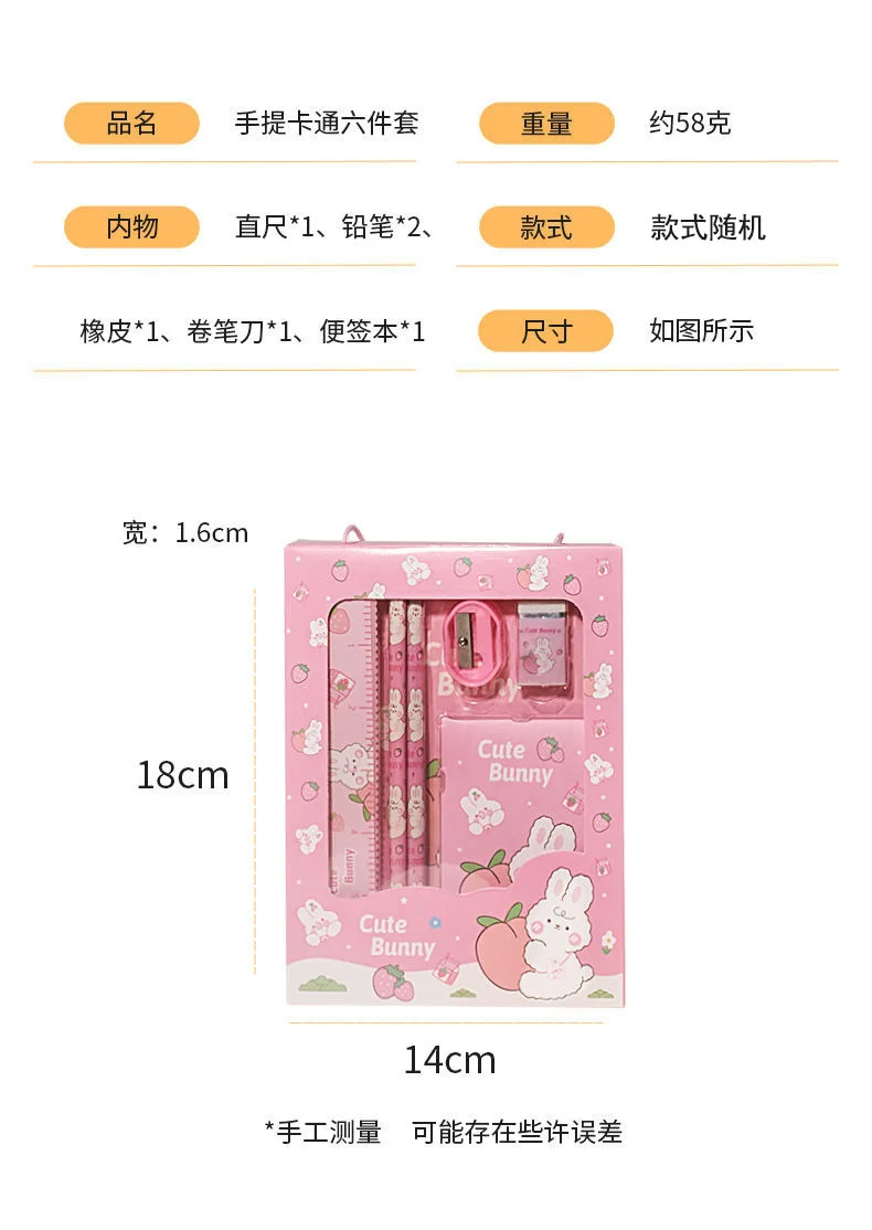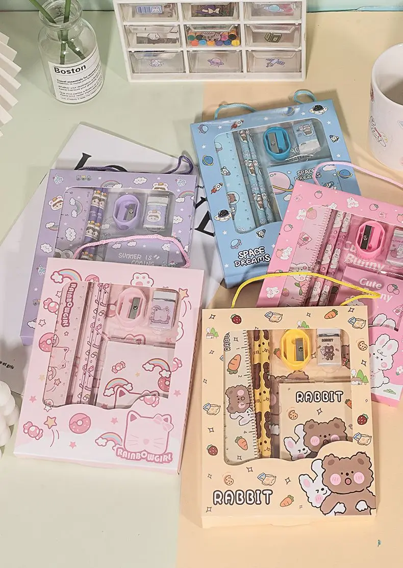 6PCS Stationery Set School Students Stationery Six-piece Gift Box Pencil Eraser School Supplies Gift for Friends