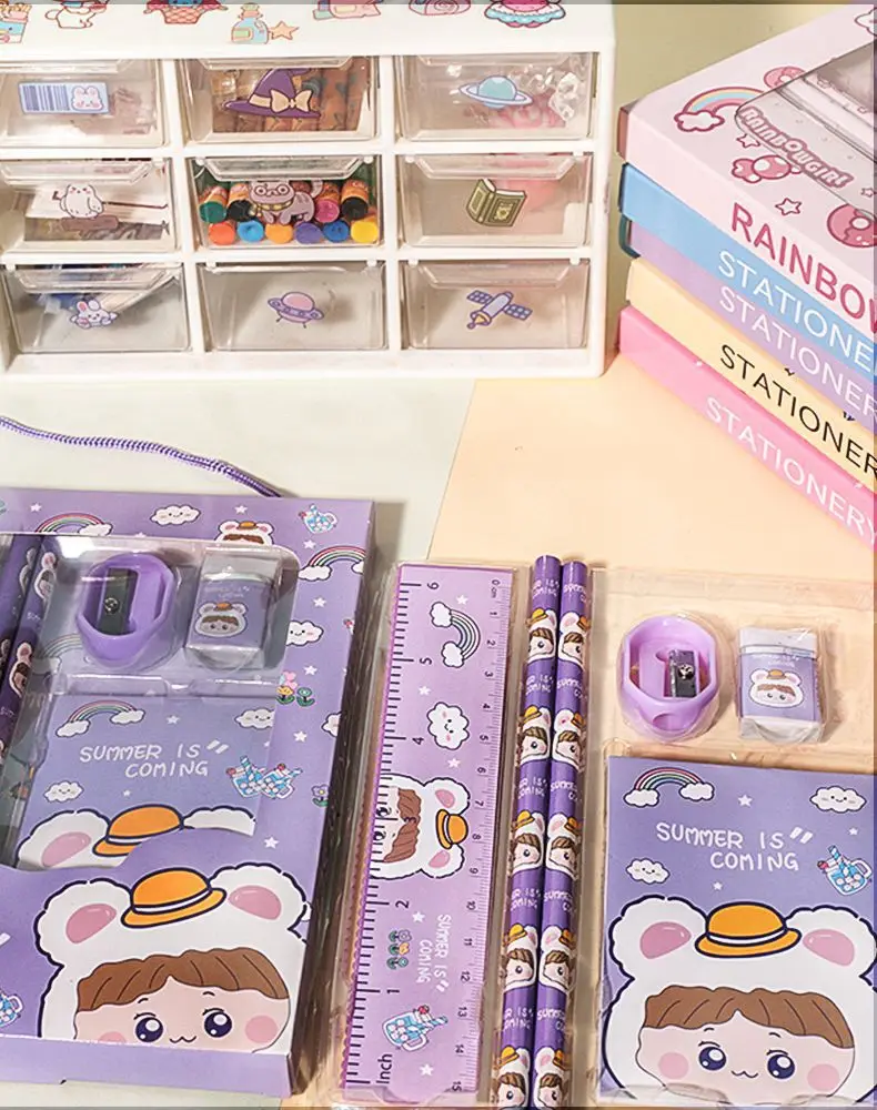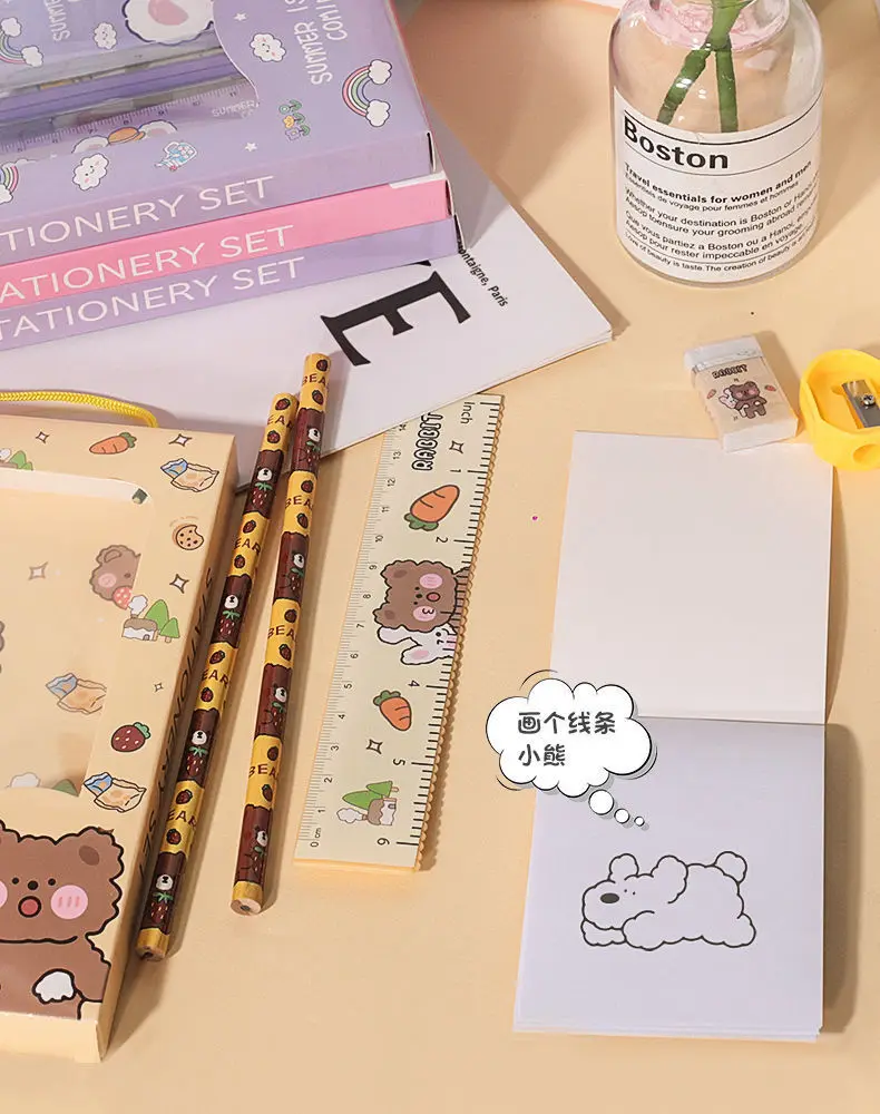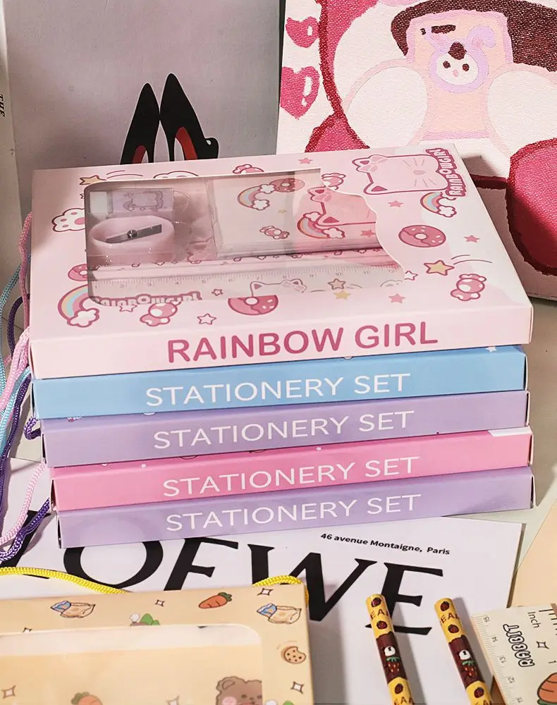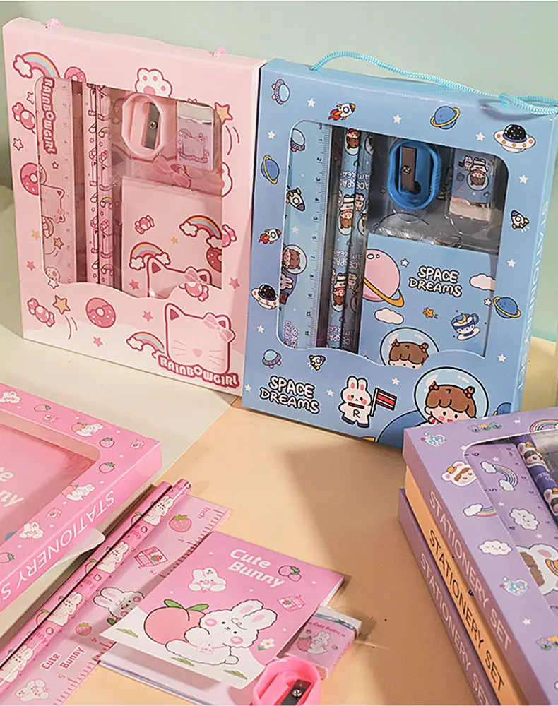 6PCS Stationery Set School Students Stationery Six-piece Gift Box Pencil Eraser School Supplies Gift for Friends