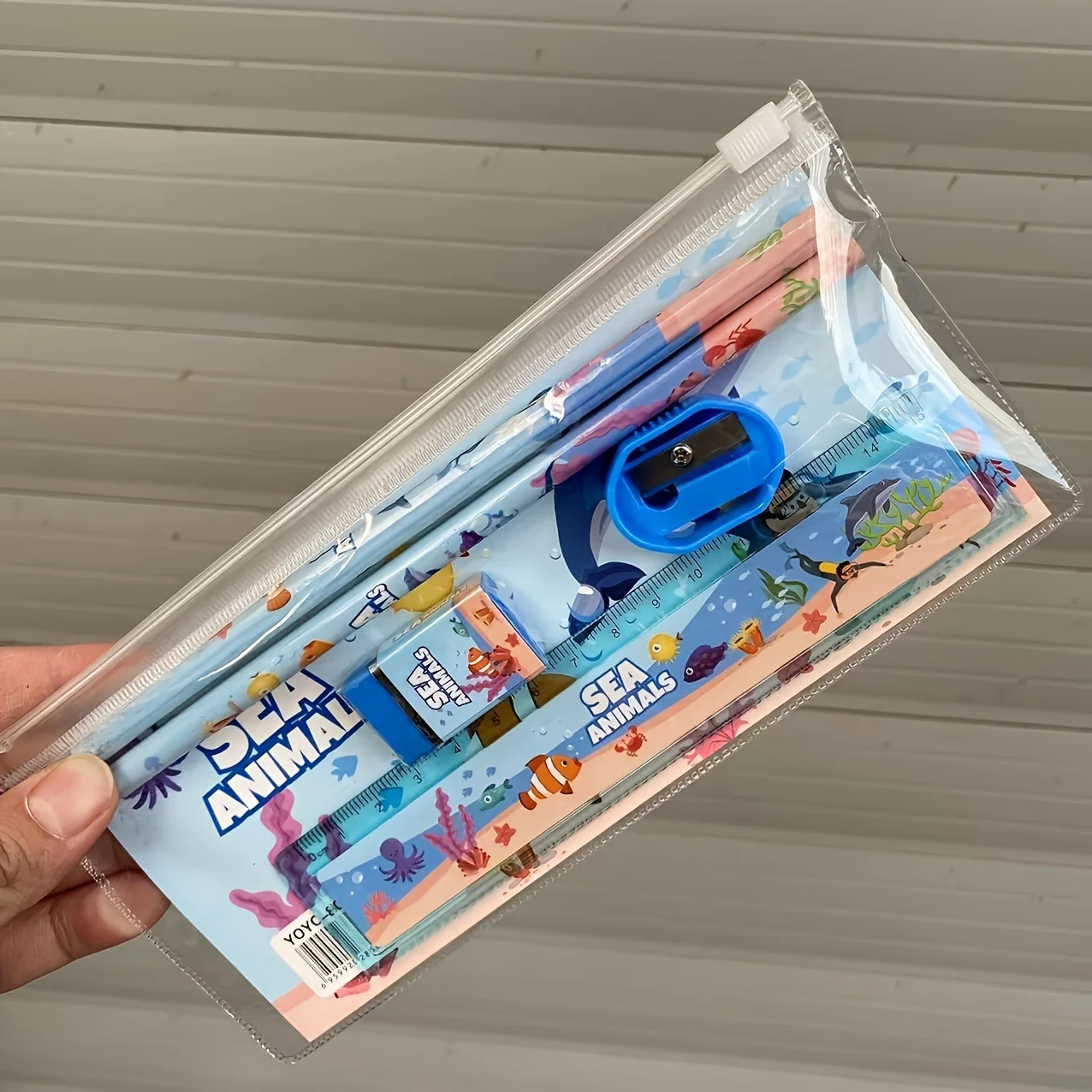 Animal Themed Stationery Set Portable Gift Box, Includes Pencil, Eraser, Pencil Sharpener, Ruler School Supplies Set