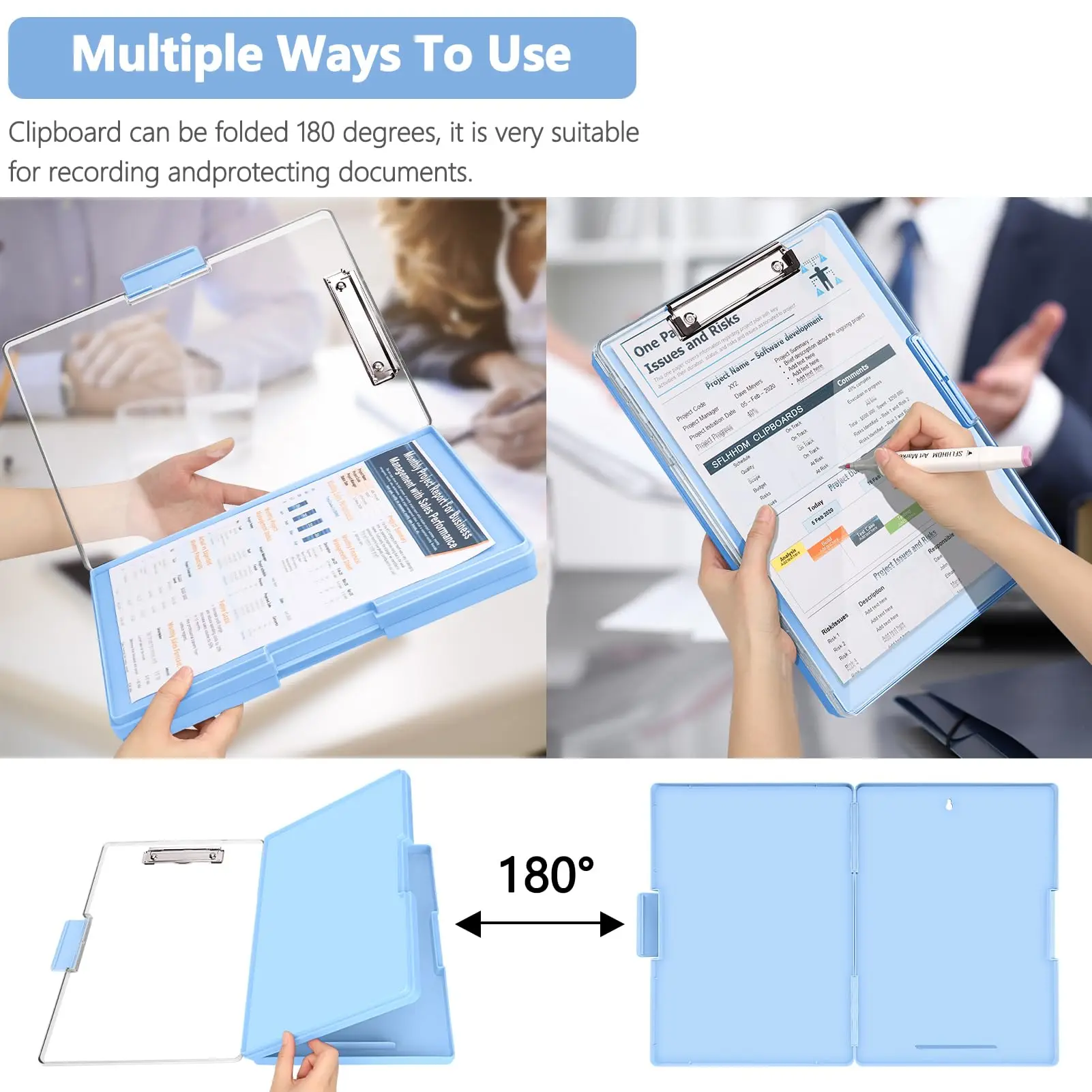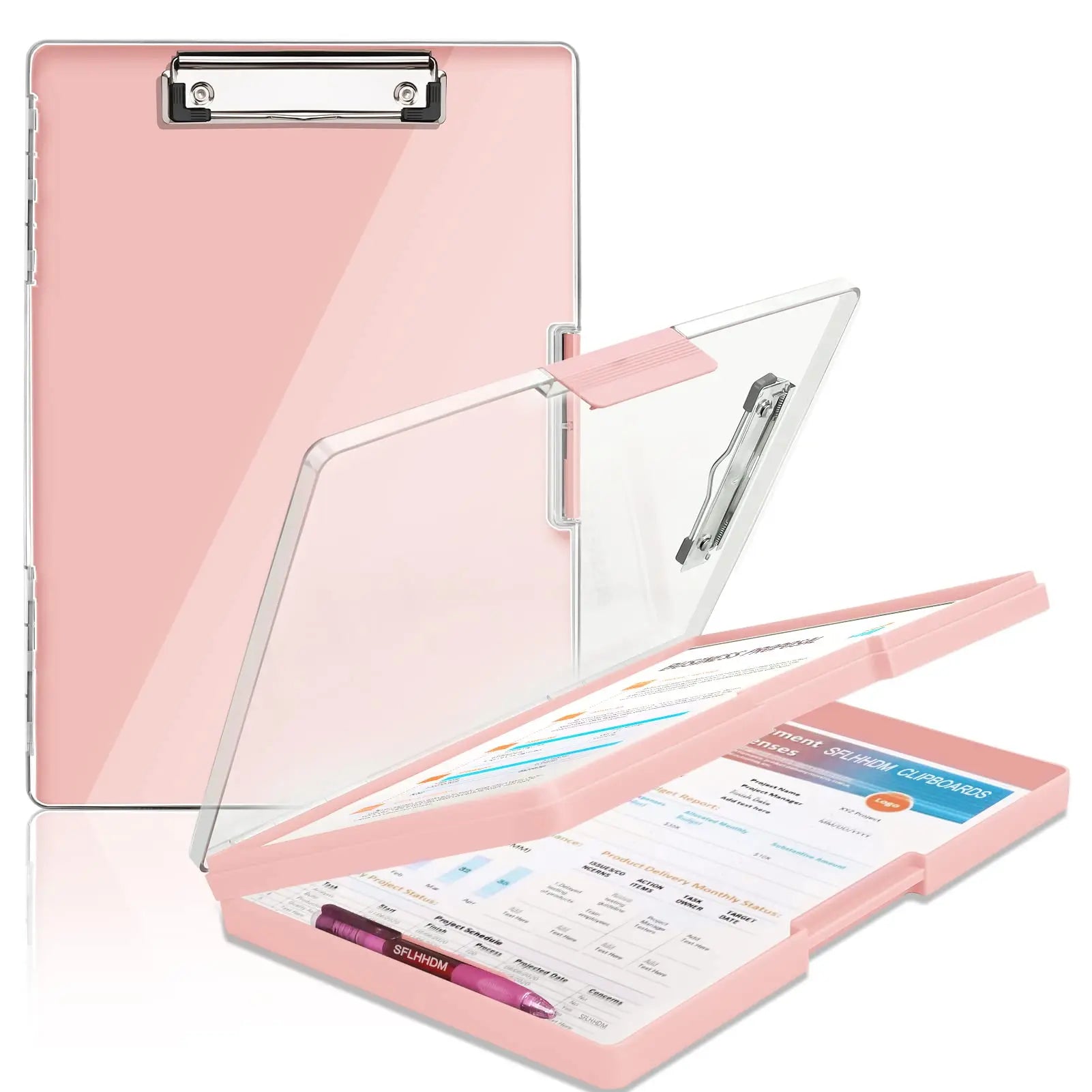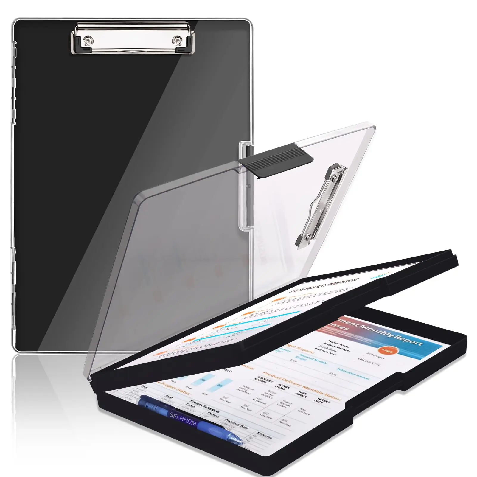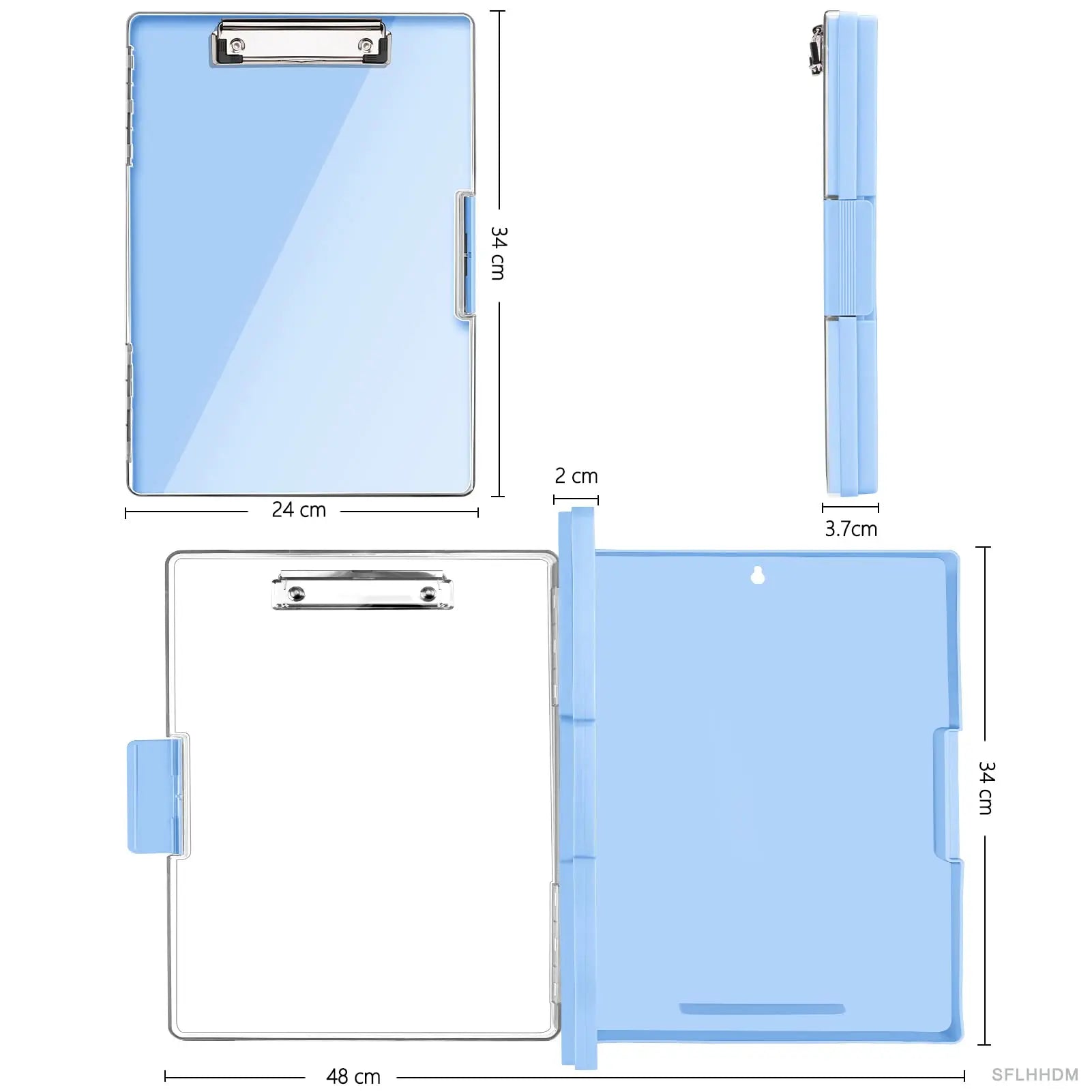 Clipboard with storage space 34x24 cm, heavy duty storage clipboard, plastic clipboard with side opening folding.