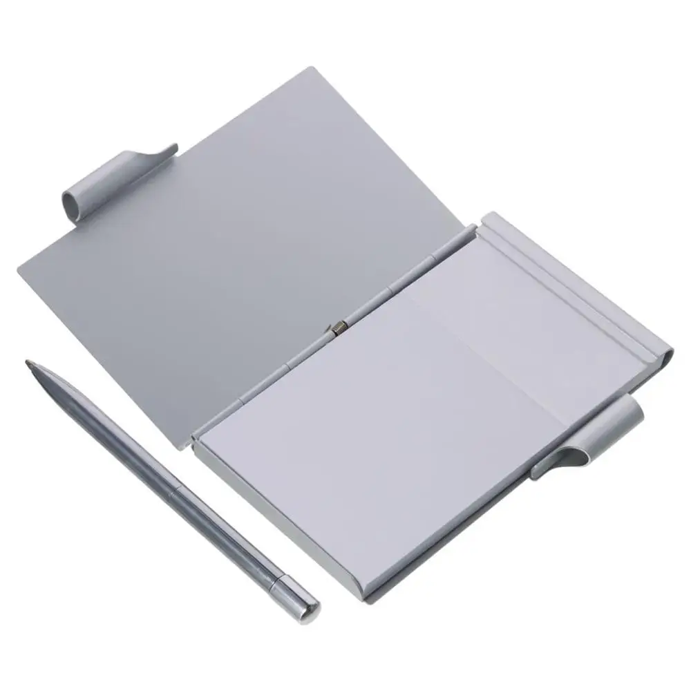 Metal Pocket Notebook Aluminum Portable Notepad with Pen and Refillable Paper Travel Notepad with Pen Holder