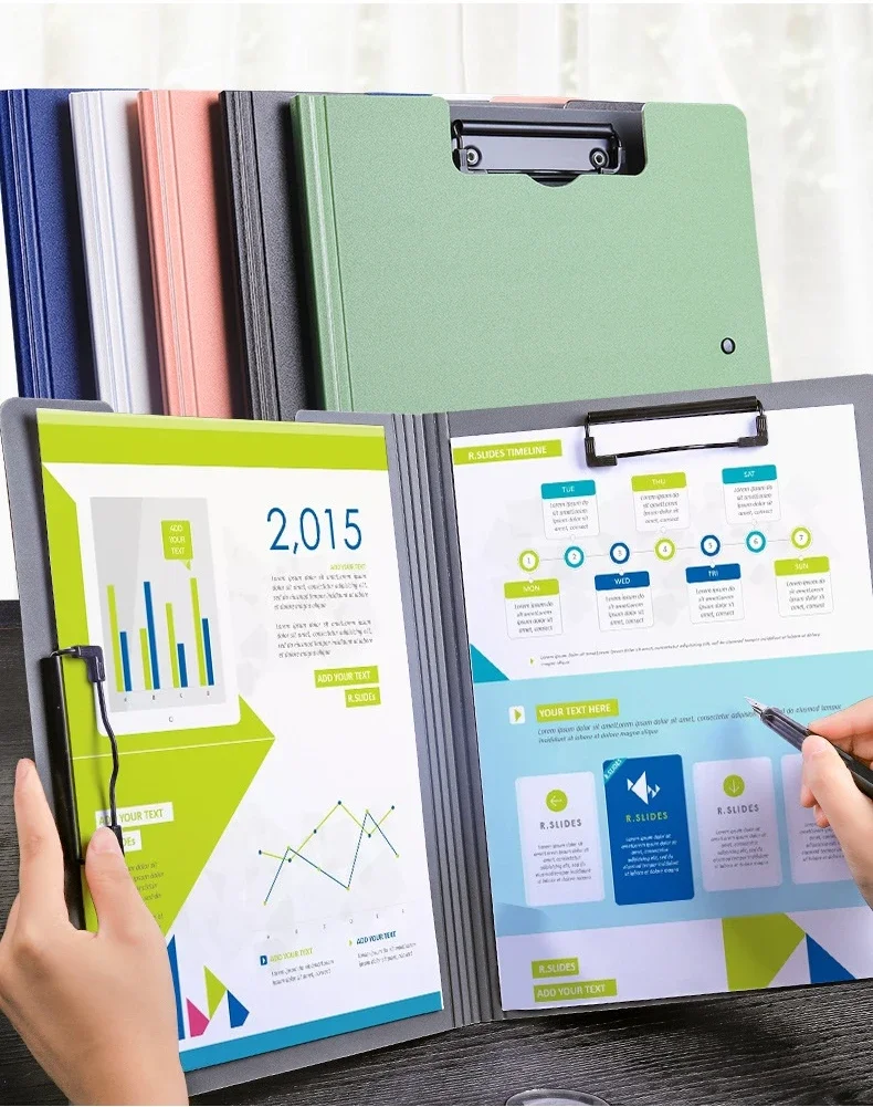 A4 File Folder Clipboard Writing Pad Memo Clip Board Double Clips Test Paper Storage Organizer School Supplies Office Stationary