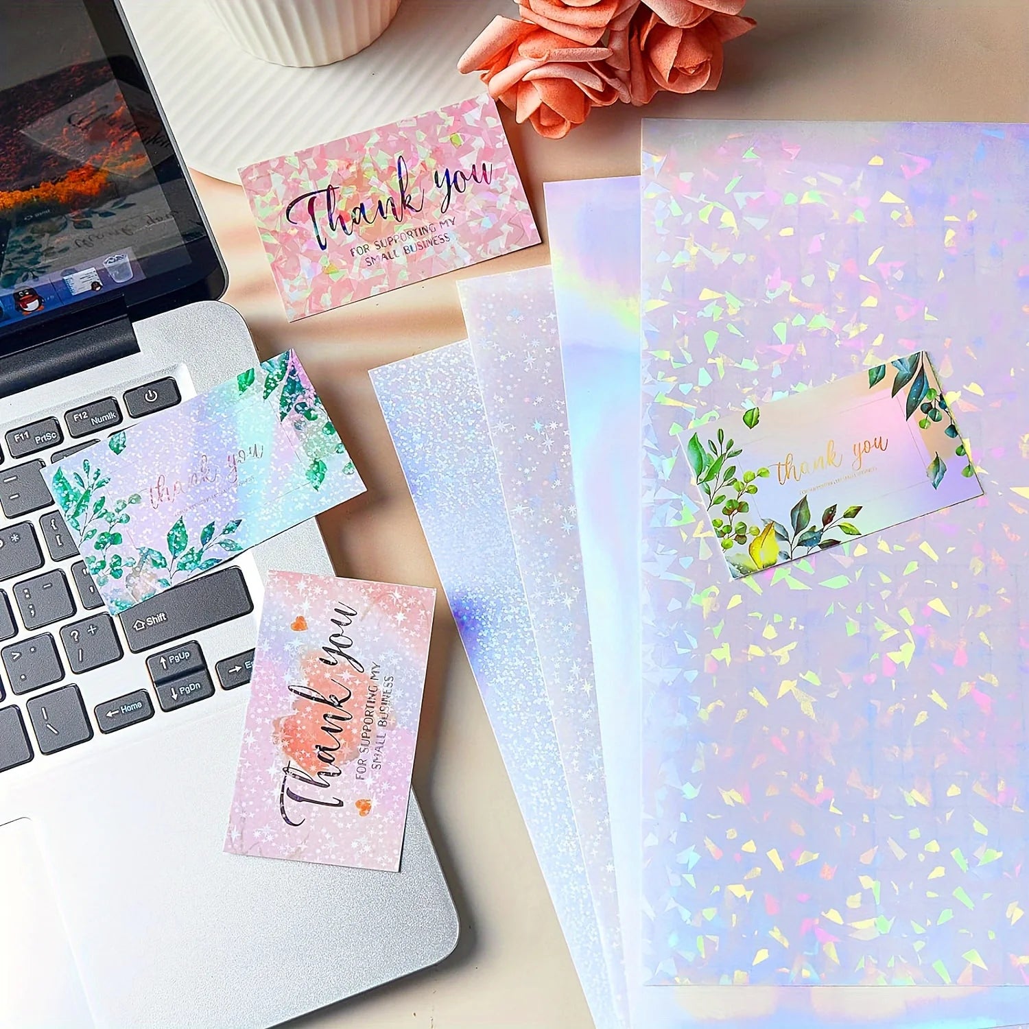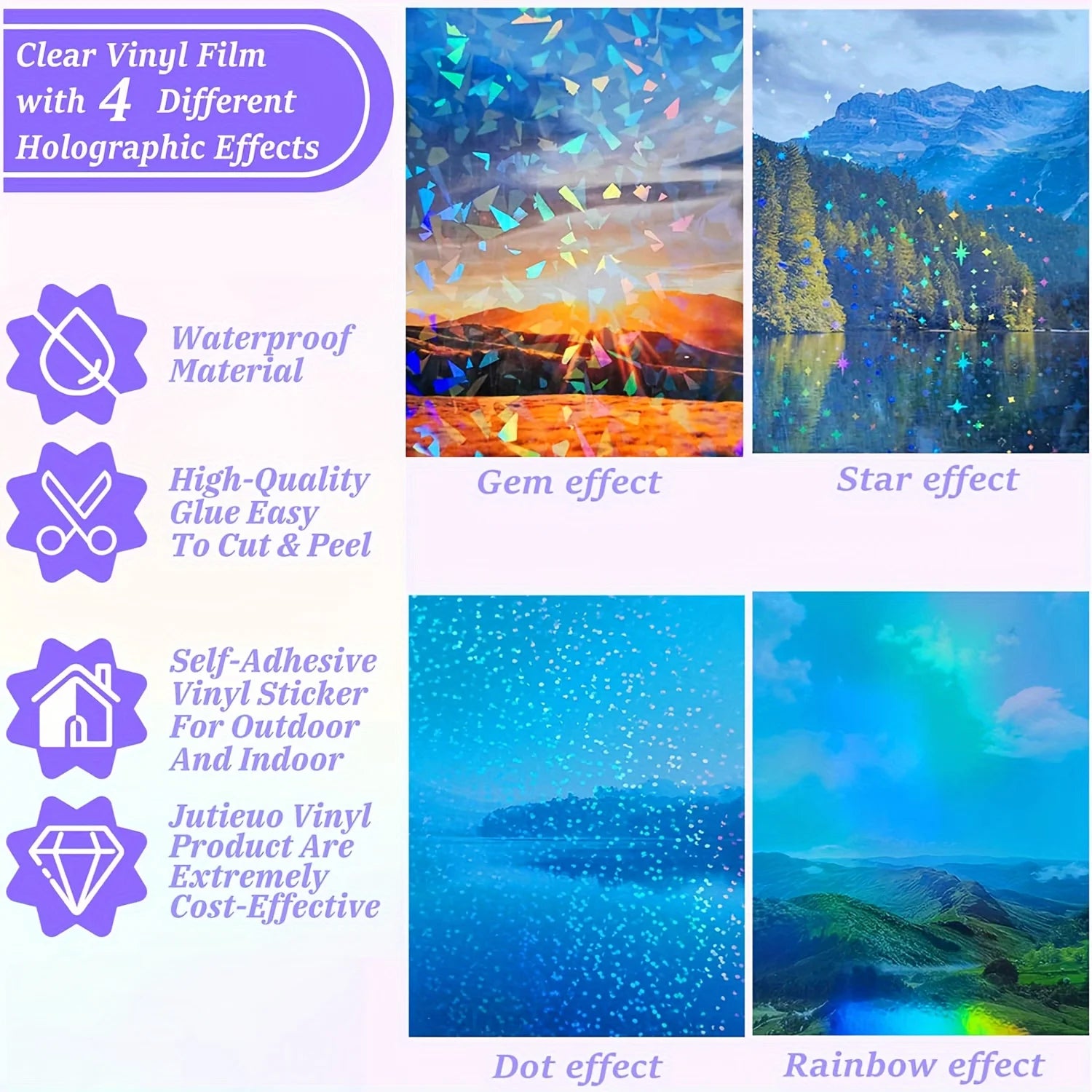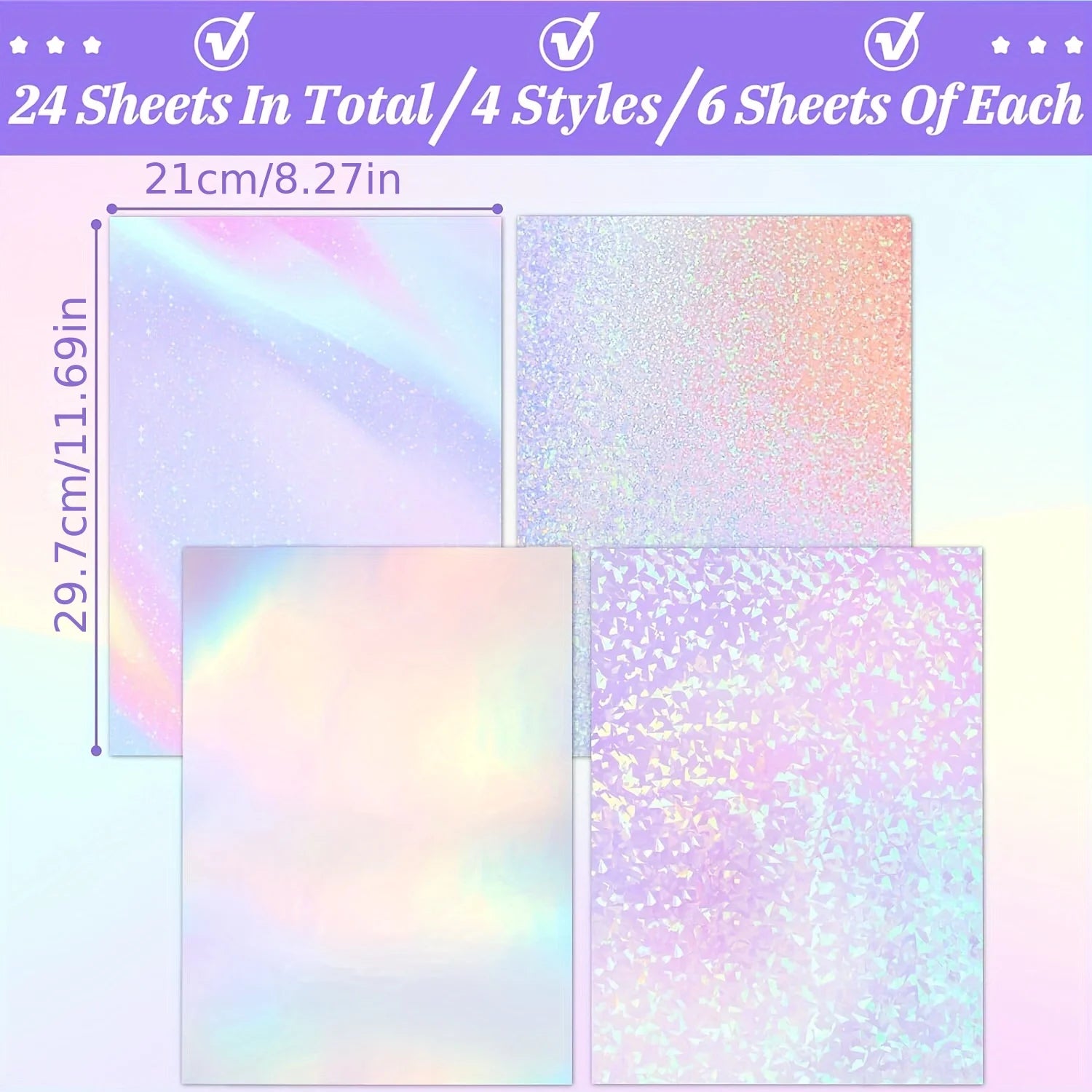 24 sheets of holographic stickers, clear vinyl self-adhesive for photos, pictures, cards, crafts (A4 size/4 styles)