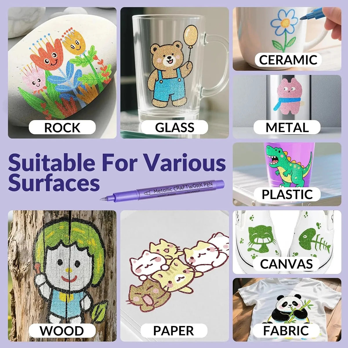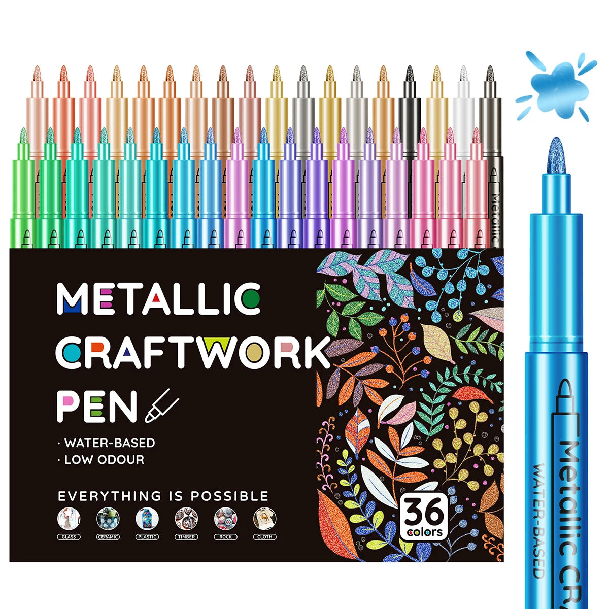 36 Colors Metallic Paint Markers Pens Set for Rock Painting Stone Ceramic Wood Fabric Pebbles Scrapbook Journals Photo Albums