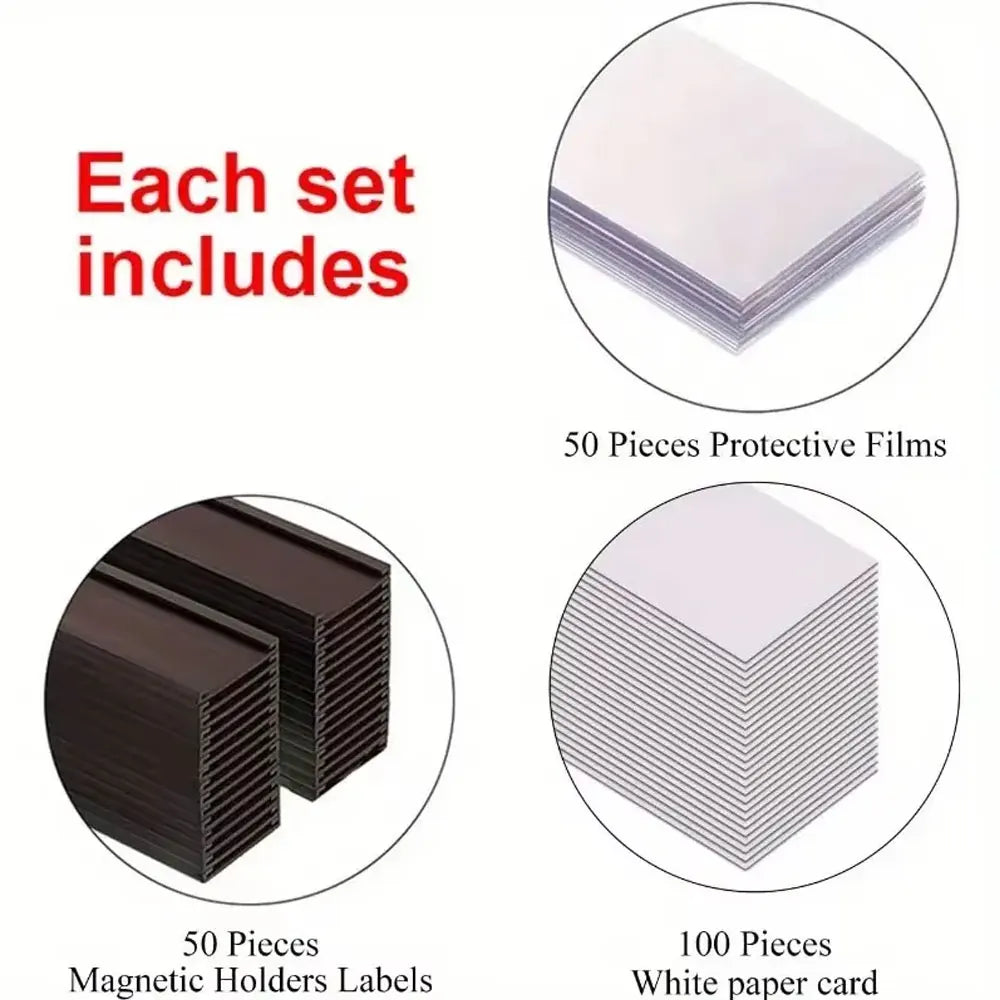 50pcs magnetic label holder, magnet label holder with protective film replacement strip for metal shelves