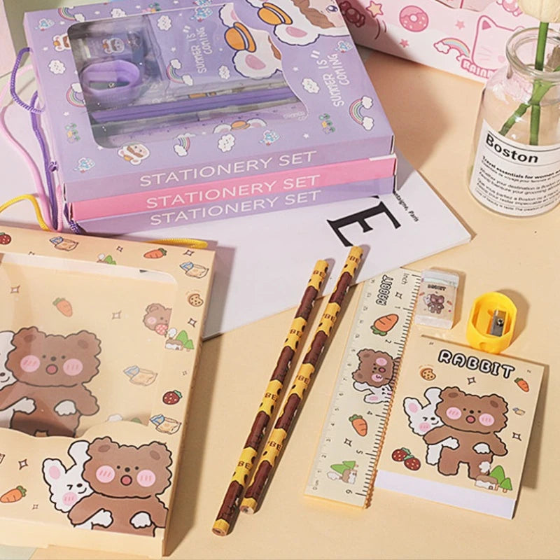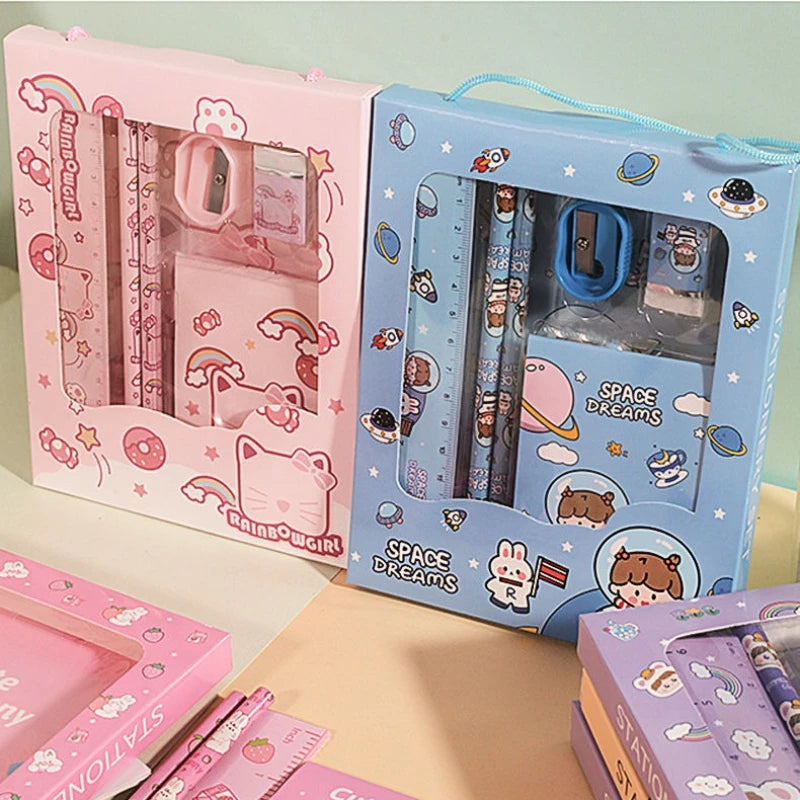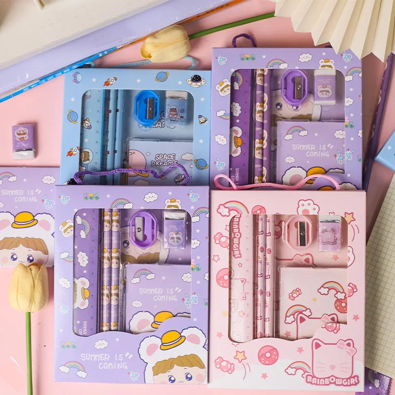 6PCS Stationery Set School Students Stationery Six-piece Gift Box Pencil Eraser School Supplies Gift for Friends