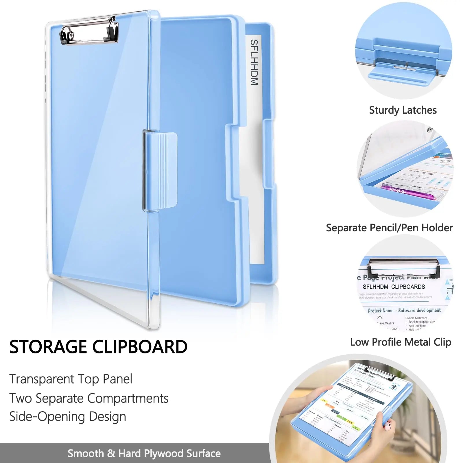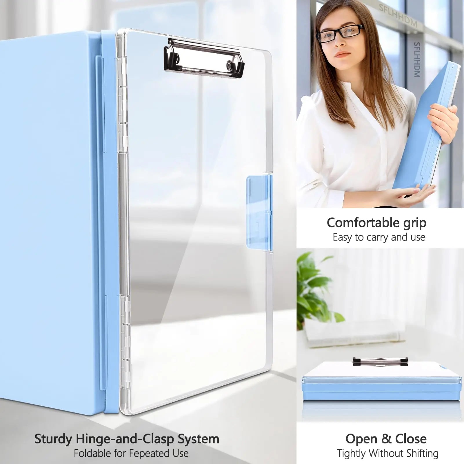 Clipboard with storage space 34x24 cm, heavy duty storage clipboard, plastic clipboard with side opening folding.
