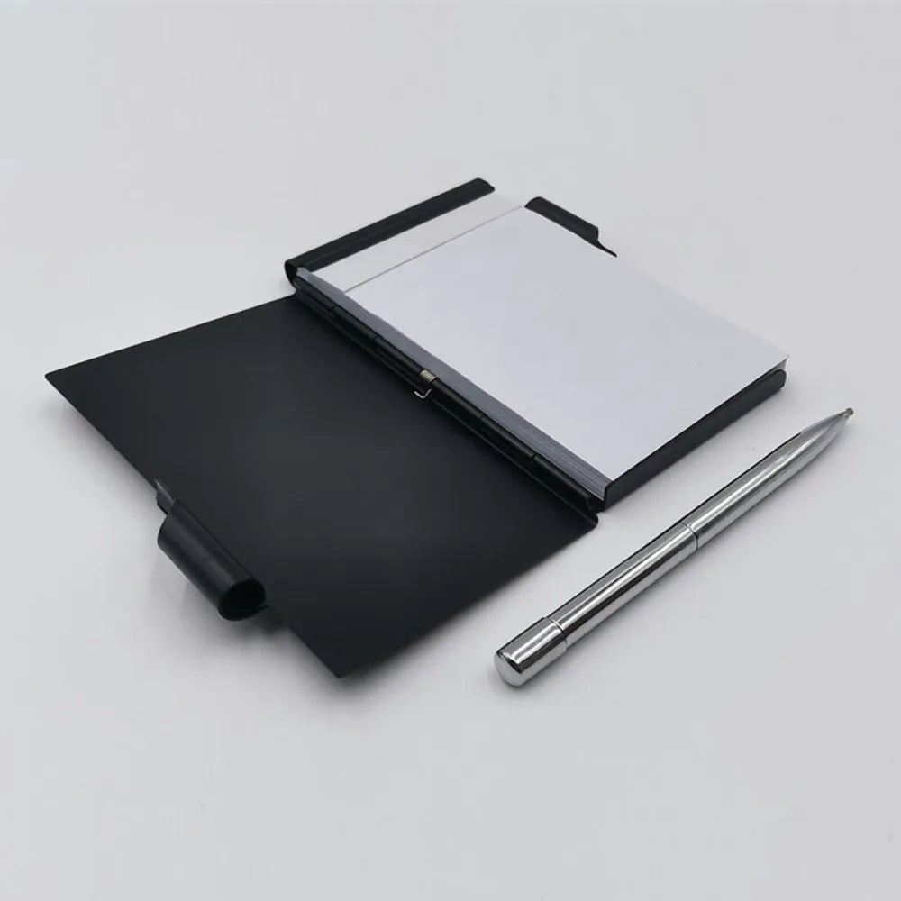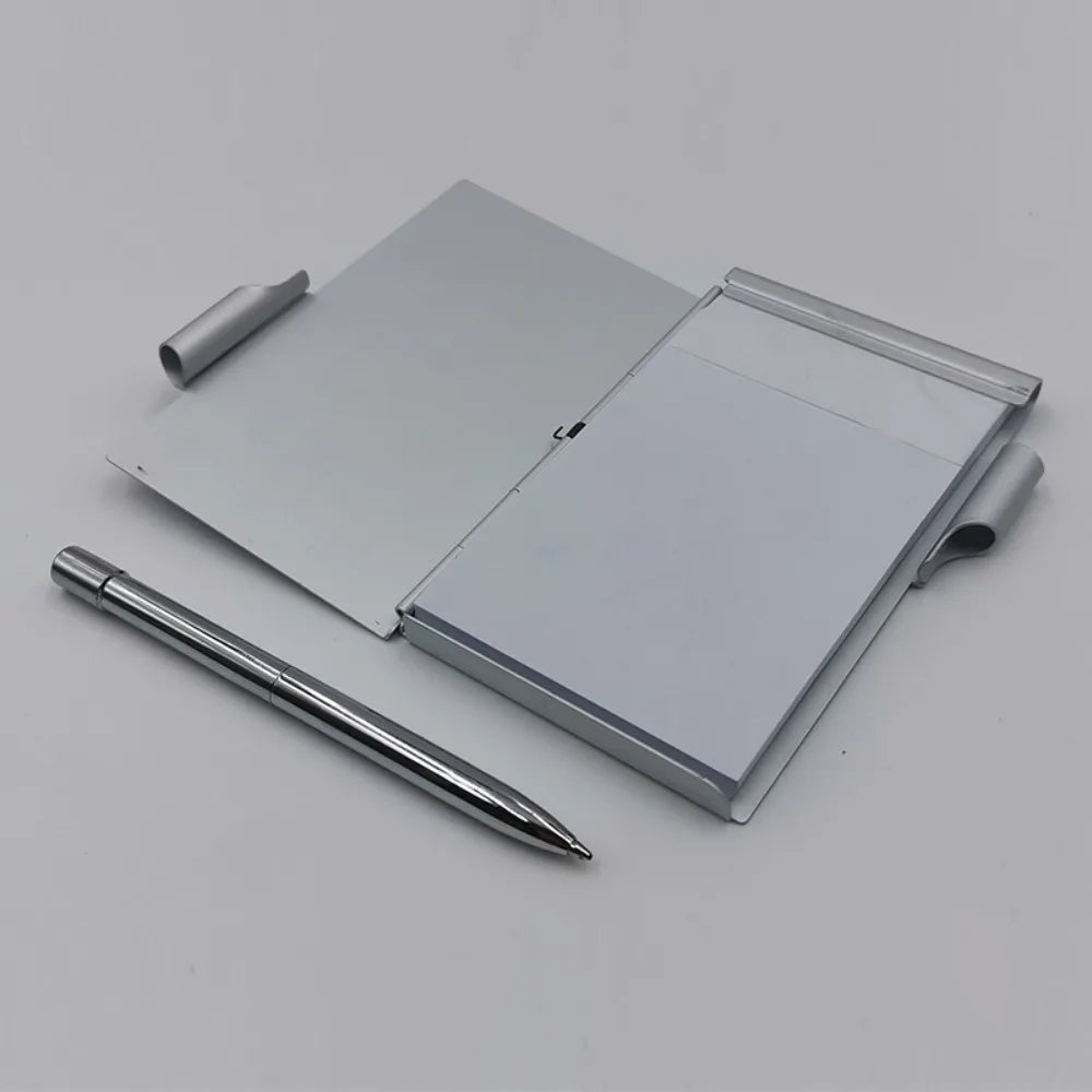 Pocket Notebook with Pen and Refillable Paper Portable Metal Mini Notepad Travel Notepad with Pen Holder for Office Home